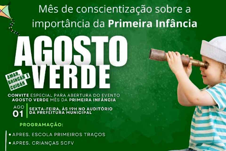 Em um importante movimento para fortalecer o cuidado e o desenvolvimento infantil, a Prefeitura de Presidente Médici convida toda a comunidade para uma ação especial de abertura do mês de conscientização sobre os cuidados com a primeira infância, o Agosto Verde. O evento acontece hoje, às 19h, no Auditório da Prefeitura Municipal e contará com palestras focadas em temas vitais para a segurança e bem-estar de bebês e crianças.