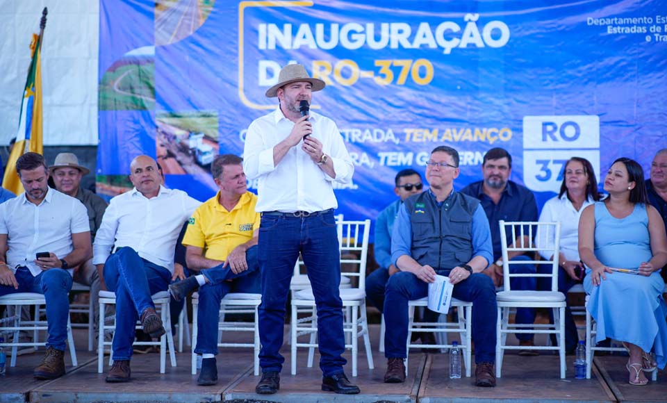 Nesta sexta-feira (15), o presidente da Assembleia Legislativa de Rondônia, deputado Alex Redano (Republicanos), participou da solenidade de entrega da pavimentação da RO-370, conhecida como Rodovia do Boi, no município de Corumbiara. O evento reuniu o governador coronel Marcos Rocha (União Brasil), o diretor-geral do Departamento de Estradas de Rodagem (DER), coronel Eder André Fernandes, o secretário-chefe da Casa Civil, Elias Rezende, além de diversas autoridades estaduais, municipais e lideranças comunitárias.