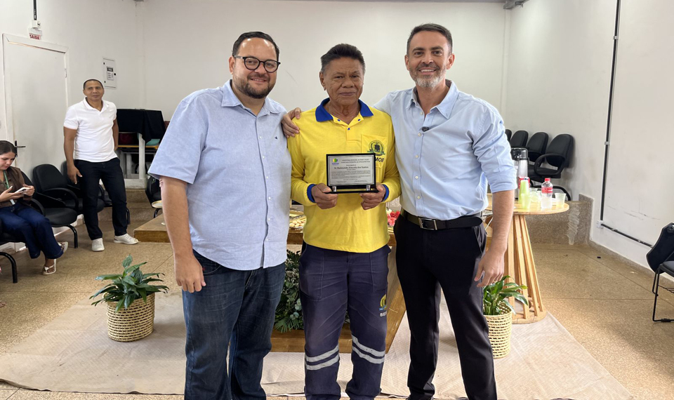 A homenagem contou com um café da manhã especial, preparado por colegas e amigos da Secretaria, mas o momento mais marcante foi a visita do prefeito Léo Moraes, que fez questão de comparecer pessoalmente para entregar uma placa de agradecimento ao servidor.