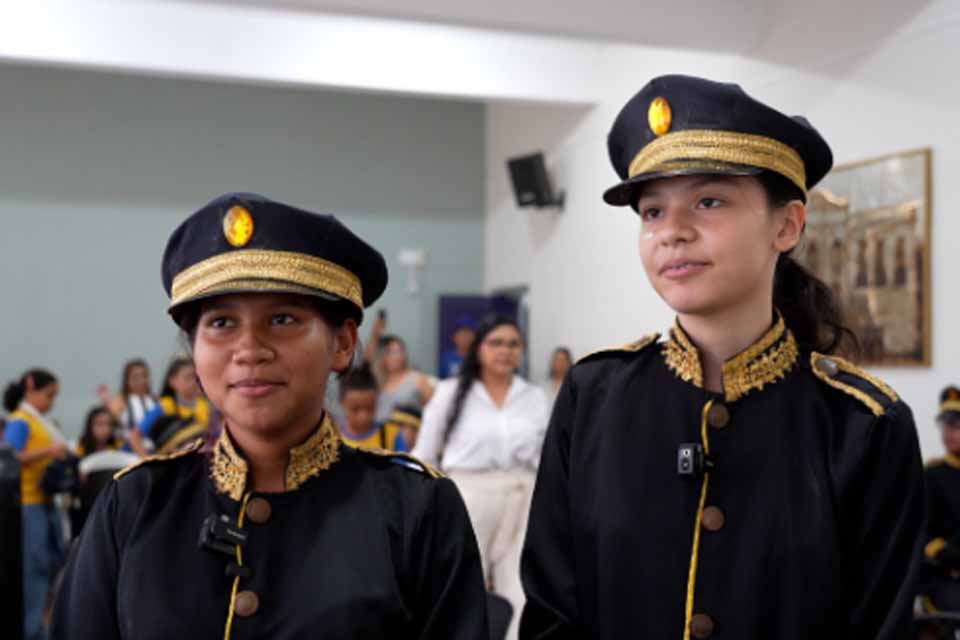 Na manhã desta quarta-feira (10), integrantes da Banda Musical do Centro Municipal de Arte e Cultura Escolar (CMACE) Francisco Lázaro dos Santos Laio e estudantes da Escola Municipal Nações Unidas foram recebidos no Prédio do Relógio, sede da Prefeitura de Porto Velho, para uma justa homenagem.