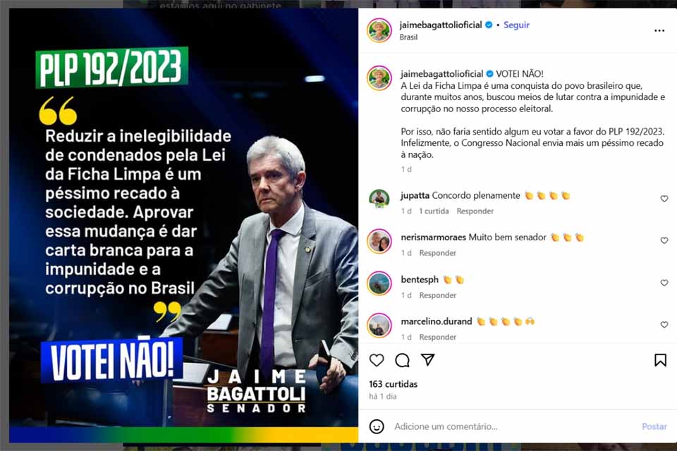 O ex-governador também comparou a postura de Bagattoli com a do senador Marco Rogério (PL), a quem fez questão de elogiar. “Marco Rogério teve coragem de defender o justo. Ele não votou pensando em Ivo Cassol, mas no direito de qualquer político que já pagou sua pena poder voltar. Isso é justiça. Bagattoli não entende, é analfabeto político”, disparou.
