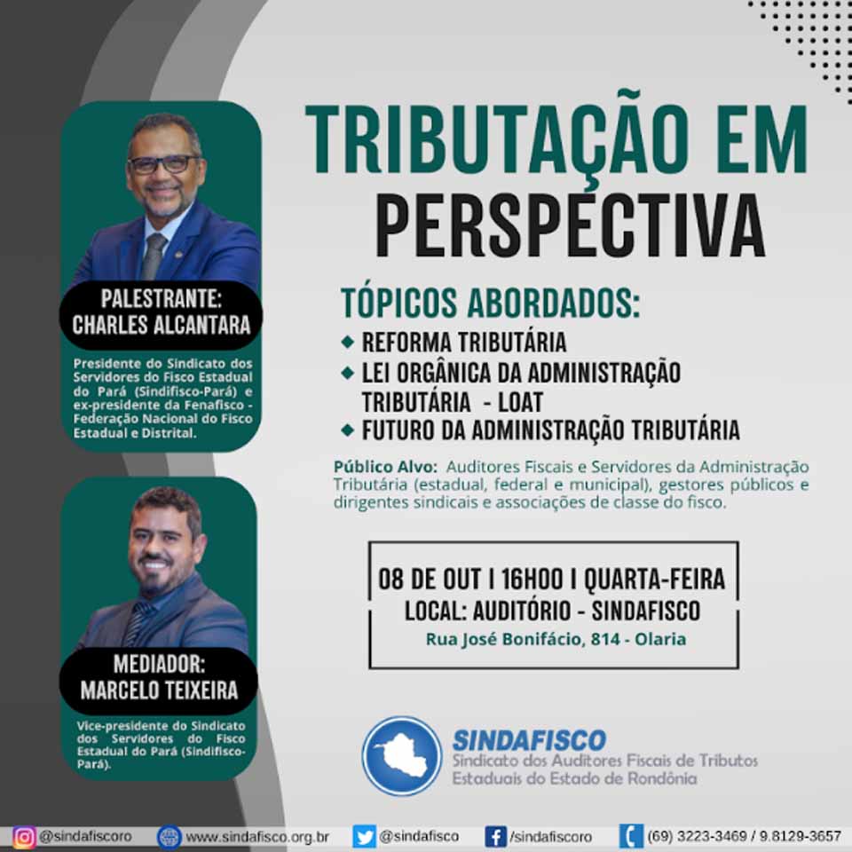 O evento terá como palestrante o renomado Charles Alcantara, presidente do Sindicato dos Servidores do Fisco Estadual do Pará (Sindifisco-Pará) e ex-presidente da Fenafisco – Federação Nacional do Fisco Estadual e Distrital. A mediação ficará a cargo de Marcelo Teixeira, vice-presidente do Sindifisco-Pará.