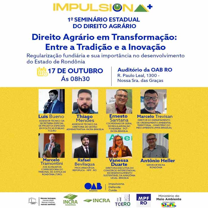 Apoio: Presidência da OAB/RO, INCRA, TJ/RO, SEPAT, TCE/RO, MPF/RO e Ministério do Meio Ambiente