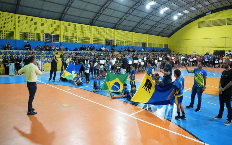Com arquibancadas lotadas, foi dada a largada oficial para a Copa Madeirão de Futsal 2025, na noite de quarta-feira (8), no Ginásio Poliesportivo Eduardo Lima e Silva (Ginásio Dudu). O evento é realizado pela Prefeitura de Porto Velho, por meio da Secretaria de Turismo, Esporte e Lazer (Semtel), e reúne 90 equipes e cerca de 1.300 atletas.