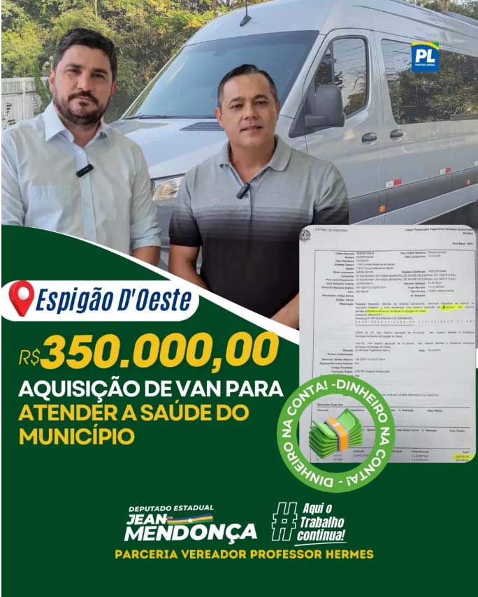 Esta semana o deputado Jean Mendonça (PL) confirmou a liberação de emenda parlamentar no valor de R$ 350.000 mil para aquisição de uma Van equipada com consultório medico para se fazer o atendimento a pacientes no domicilio (acamados e impossibilitado de se locomover).