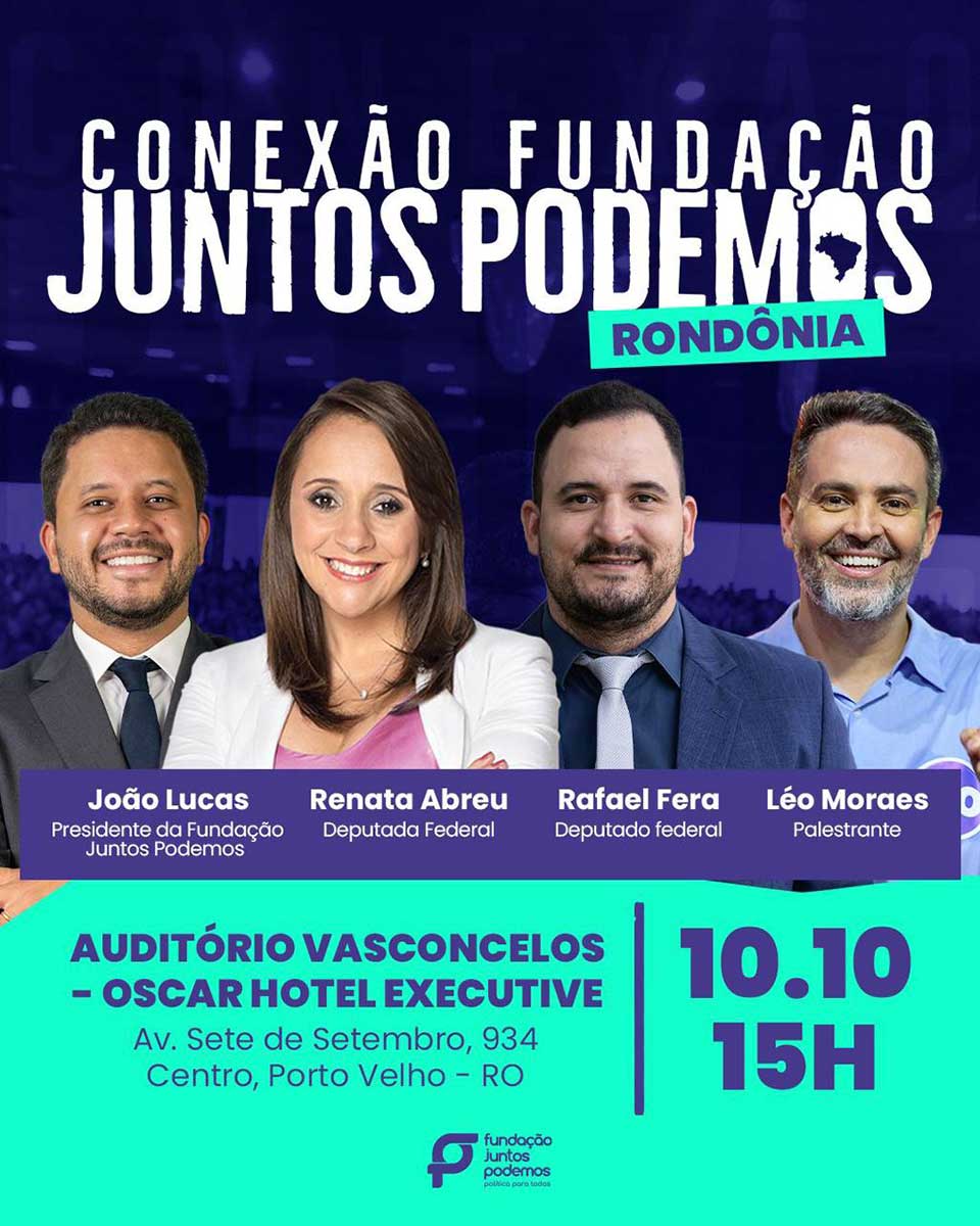 Entre os participantes confirmados estão a deputada federal e presidente do Conselho da Fundação Juntos Podemos, Renata Abreu, o presidente da fundação, João Lucas, o deputado federal Rafael Fera e o prefeito de Porto Velho, Léo Moraes, que será um dos palestrantes do evento. Também contará com os Deputados Estaduais do Podemos.