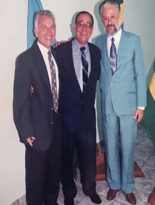 Arnaldo (c), com o vereador Natalino de Campos (e) e o historiador Scarlecio Pires.