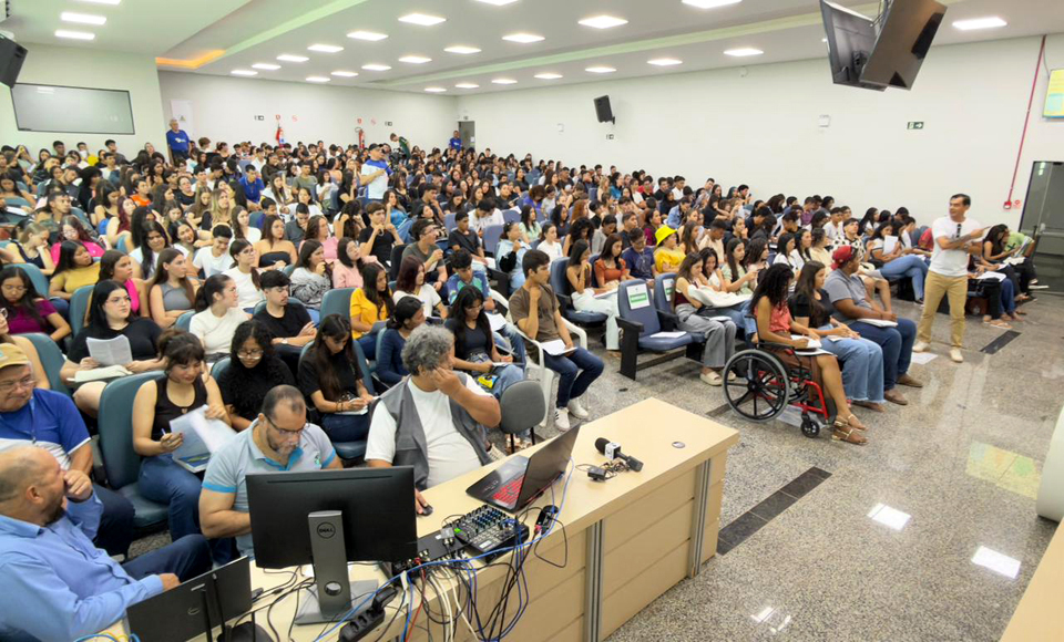 Em Cacoal, o aulão foi realizado na Câmara de Vereadores, no Plenário Ronaldo Aragão, onde mais de 450 alunos participaram do evento, que marcou um momento histórico na região.