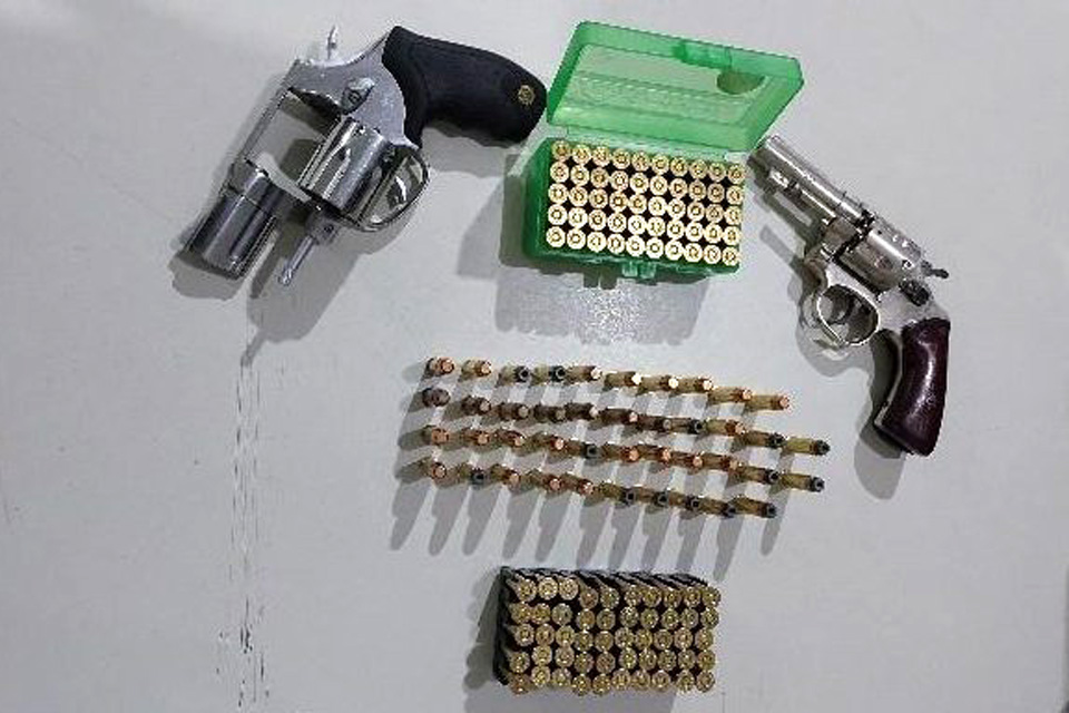 Ao chegar ao local, os policiais demonstraram elevado tirocínio policial, adotando procedimentos táticos de segurança e abordagem, o que resultou na rendição pacífica do suspeito. Durante a busca, foram localizados dois revólveres, calibres .32 e .38, além de 142 munições intactas, configurando crime de posse irregular de arma de fogo.