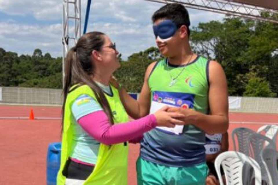 A técnica Roberta Sagamate, de Vilhena, e o atleta Matheus Eduardo, deficiente visual que foi destaque no atletismo