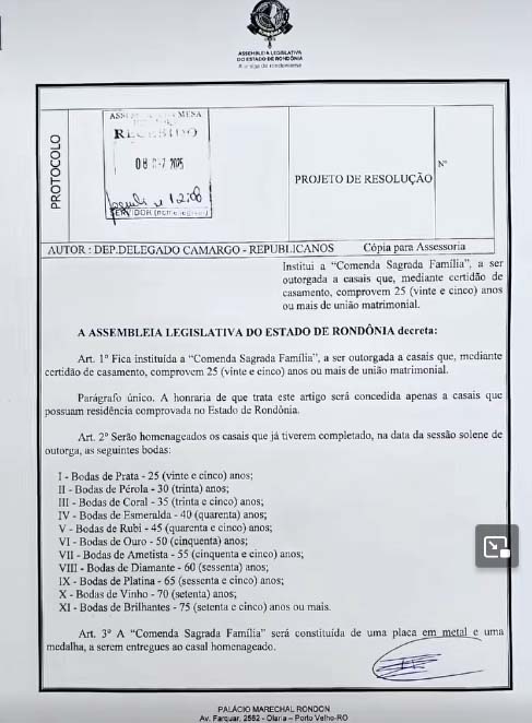 Ao anunciar a iniciativa, o parlamentar afirmou: “Hoje celebro o Dia Nacional da Família apresentando um projeto que honra aquilo que Deus instituiu: a Comenda Sagrada Família.” Segundo ele, a proposta busca reconhecer casais que, em suas palavras, “escolheram manter viva a aliança, o amor e o propósito, mesmo diante das lutas”.