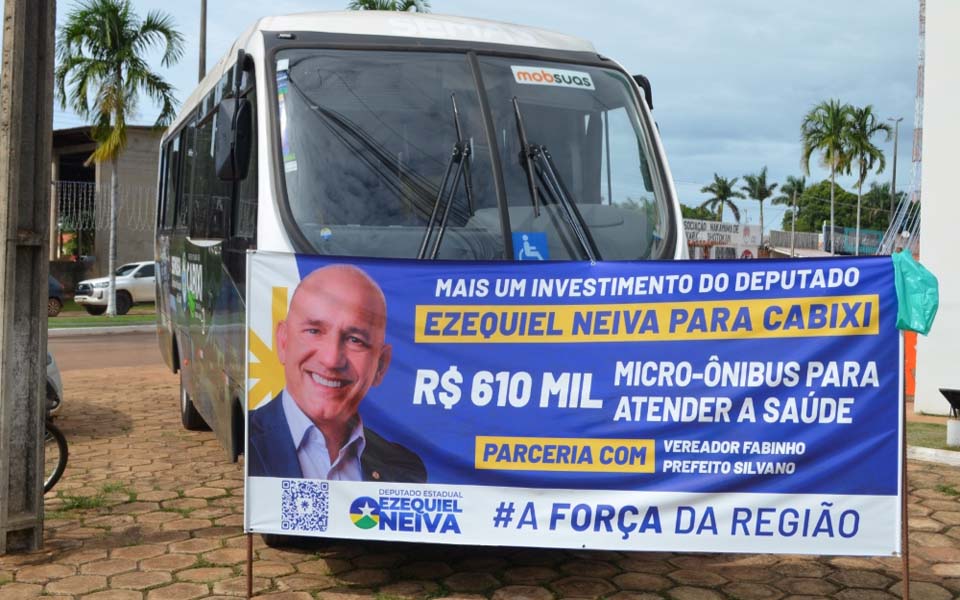 A população do município de Cabixi recebeu um importante reforço para a área da saúde com a entrega de um micro-ônibus destinado ao transporte de pacientes. O veículo foi adquirido por meio de emenda parlamentar do deputado estadual Ezequiel Neiva (União Brasil), que destinou R$ 610 mil ao município para a compra do equipamento.
