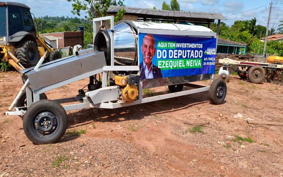 Os produtores rurais de São Felipe D’Oeste agora contam com um importante reforço para o trabalho no campo: um novo quebrador de cacau, equipamento que chega para modernizar e agilizar a rotina das famílias agricultoras. A aquisição foi possível graças a uma emenda parlamentar do deputado estadual Ezequiel Neiva (União Brasil), atendendo solicitação do vereador Alemão (Podemos), em parceria com o vice-prefeito Edinho da Fa (Podemos).