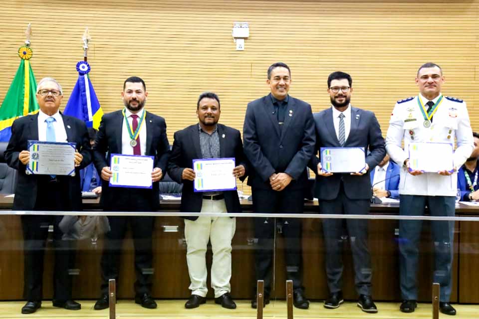 O deputado estadual Eyder Brasilrealizou uma solenidade de homenagens a autoridades que se destacam pelo trabalho em prol do Estado de Rondônia. O chefe da Casa Civil do Governo do Estado, Elias Rezende, recebeu o título honorífico de Honra ao Mérito do Estado de Rondônia, enquanto o promotor de Justiça Anderson Batista de Oliveira, coordenador do Grupo de Atuação Especial de Combate ao Crime Organizado (Gaeco), foi agraciado com a Medalha do Mérito Legislativo.