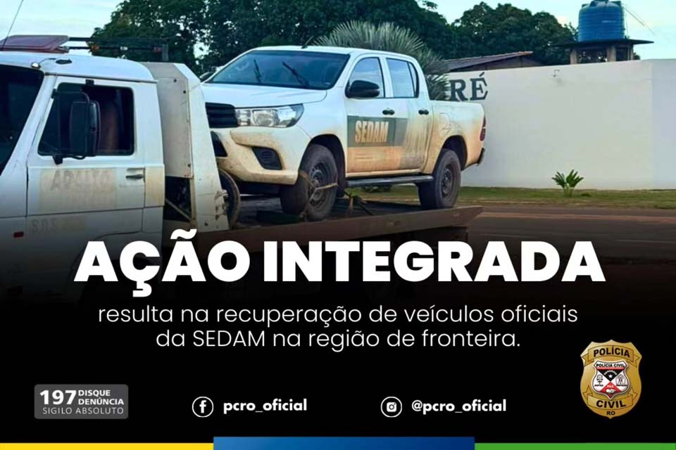 A Polícia Civil do Estado de Rondônia, por meio da Delegacia de Repressão ao Crime Organizado (DRACO 2), em atuação integrada com a Polícia Militar, recuperou, neste domingo (1º de fevereiro), duas caminhonetes oficiais pertencentes à Secretaria de Estado do Desenvolvimento Ambiental (SEDAM). Os veículos haviam sido furtados recentemente no município de Cacoal.