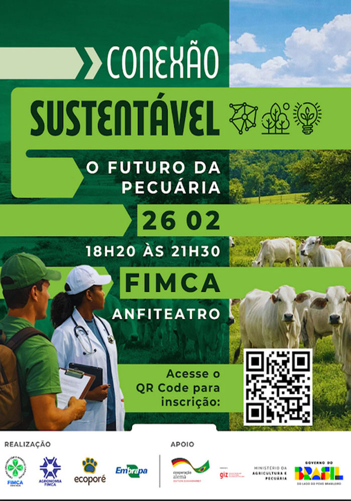 A Ecoporé realiza no dia 26 de fevereiro o seminário Conexão Sustentável: O Futuro da Pecuária, no Anfiteatro da FIMCA, em Porto Velho. O encontro reunirá estudantes, técnicos e especialistas para discutir estratégias voltadas à eficiência produtiva, regularização ambiental e adoção de práticas sustentáveis na pecuária. Para se inscrever, basta acessar o link ( https://docs.google.com/forms/