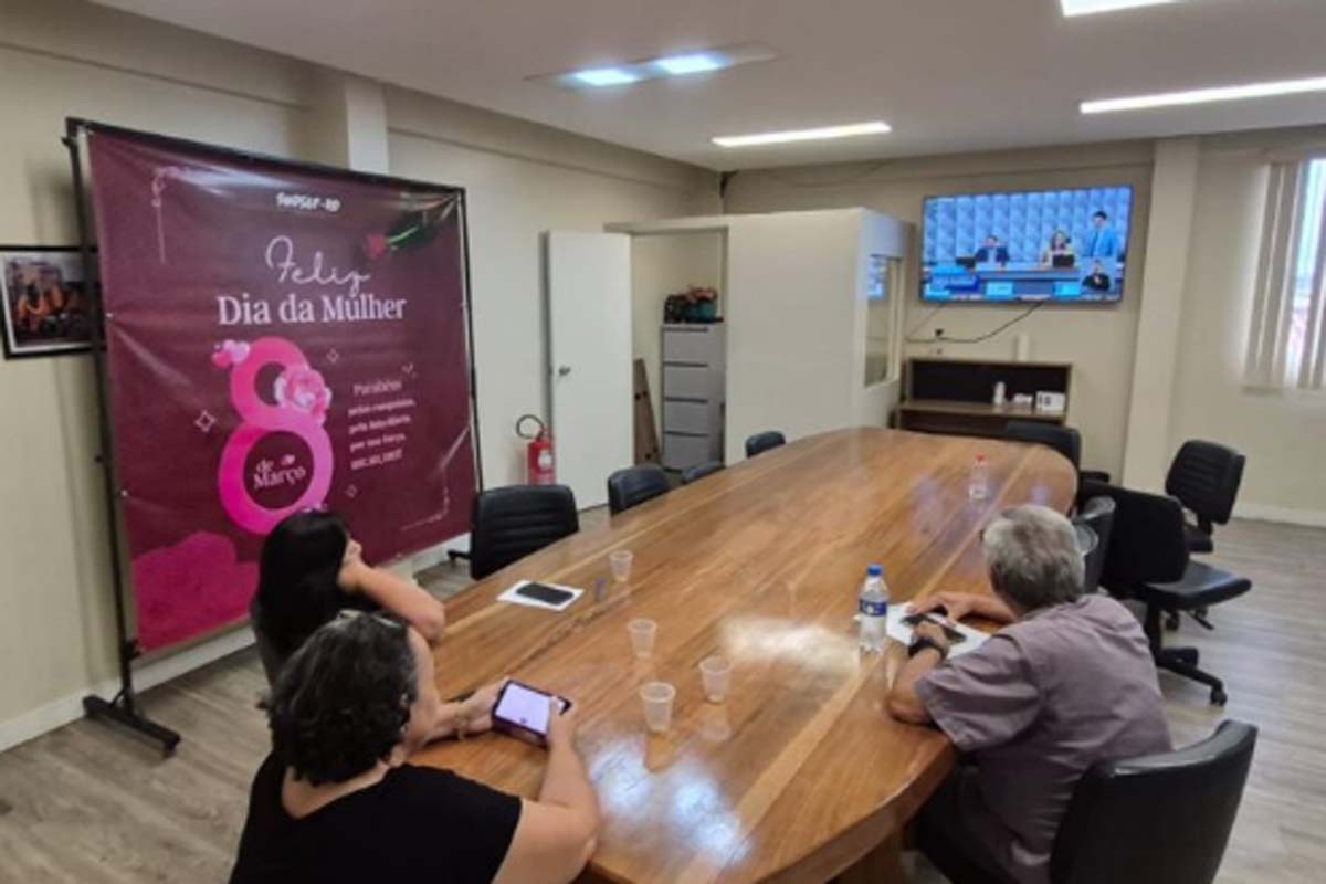 Acompanharam a reunião através da TV SENADO, os diretores do Sindsef/RO, Francisco Torres, Flávia Hiromi e Maria José.