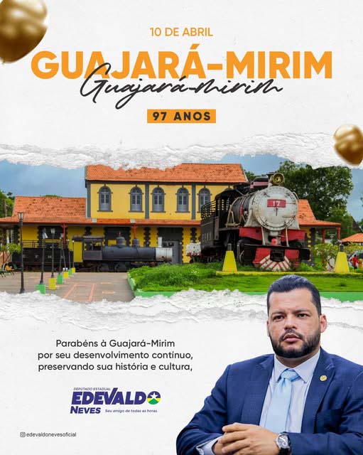 O deputado estadual Edevaldo Neves homenageou, nesta data, o município de Guajará-Mirim pelo aniversário de fundação da cidade, ressaltando a relevância histórica, cultural e social do município para Rondônia. Em publicação oficial, o parlamentar destacou a trajetória do município e enalteceu características atribuídas à população local, como a força de trabalho, o acolhimento e a preservação das tradições regionais.