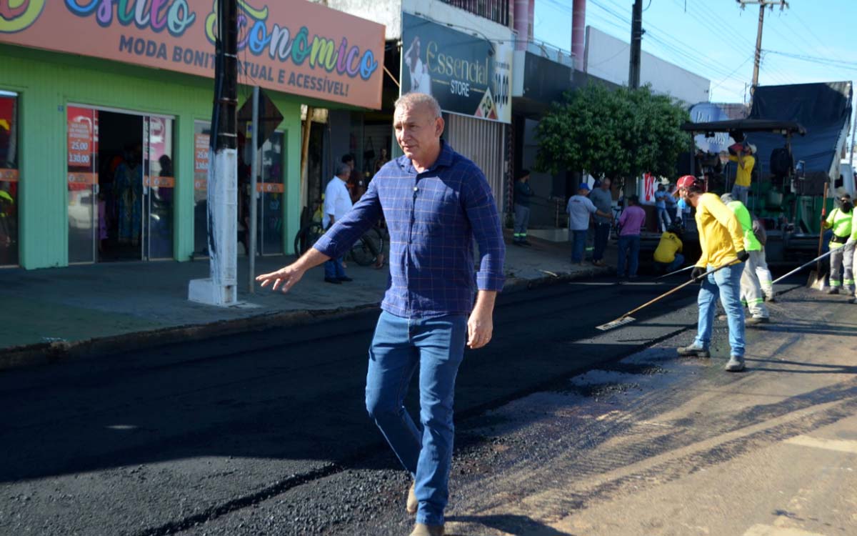 Legenda: Ezequiel Neiva esteve acompanhando as obras na avenida Integração Nacional (Foto: Alexandre Almeida I Secom ALE/RO)