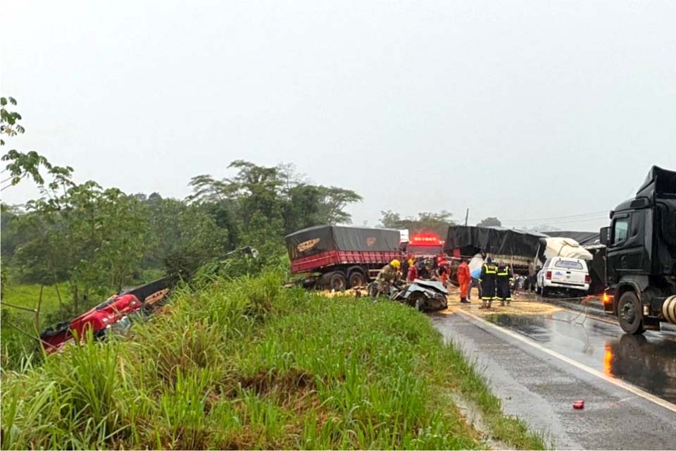 Três pessoas ficam feridas após caminhonete capotar na BR-364